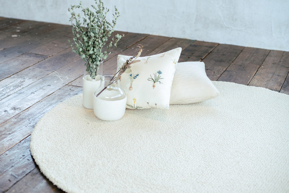 国産羊毛を使用した毛糸からラグを制作しました。